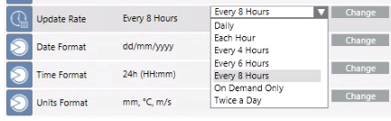 - Um die Wetterprognose nach mehreren Stunden zu aktualisieren, wählen Sie die gewünschte Rate in Stunden: