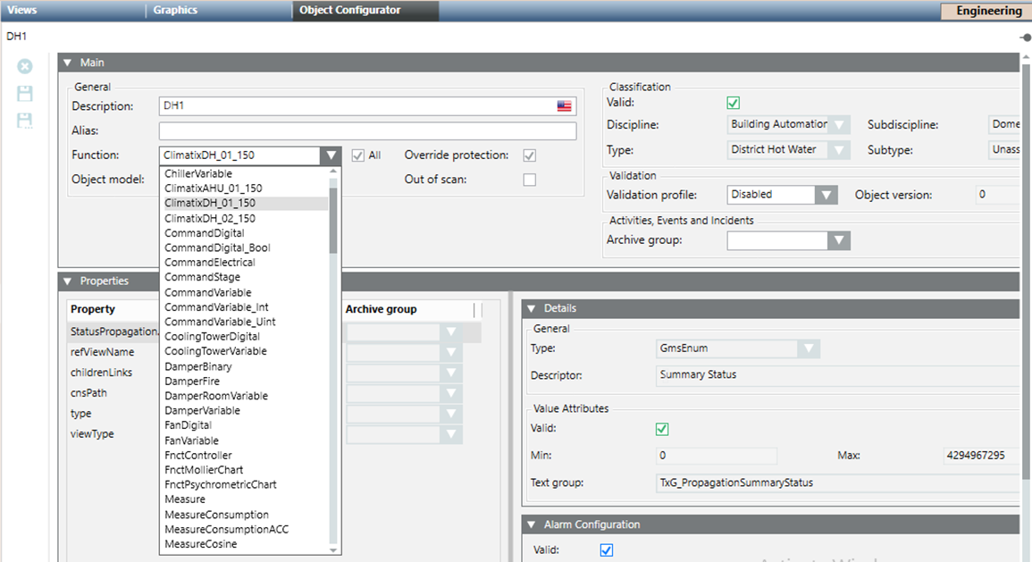 Sie können das Climatix DH-Gerät in Desigo CC konfigurieren, indem Sie ein Projekt verwenden, das nicht über die Projektvorlage Climatix_Template_DH_EN verfügt. Dazu müssen Sie Climatix DH in der Konfiguration von Desigo CC verfügbar machen und die richtige Funktion zuordnen, um die erwartete Grafikvorlage anzuzeigen.