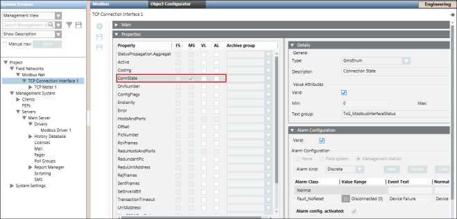 - Im System Browser ist ein Modbus-Schnittstellenobjekt verfügbar.