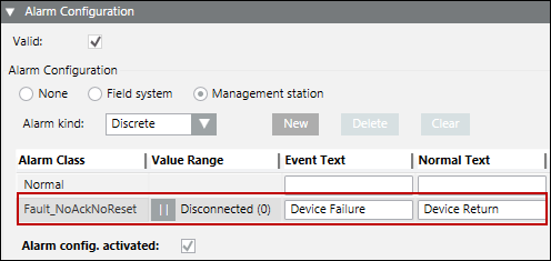 - Ändern Sie den Wert der Alarmklasse in Fault_NoAckNoReset.
