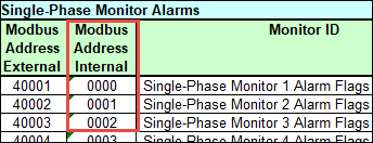Wenn Sie beispielsweise Alarme für 3 EMMMs (Einphasenmonitor 1, Einphasenmonitor 2 und Einphasenmonitor 3) konfigurieren möchten, müssen Sie die interne Adresse des jeweiligen EMMM aus dem Gerätehandbuch (0, 1, 2) als Offset-Wert für die value.info.meter_alarm_flags_read und command.meter_alarm_flags_write angeben.