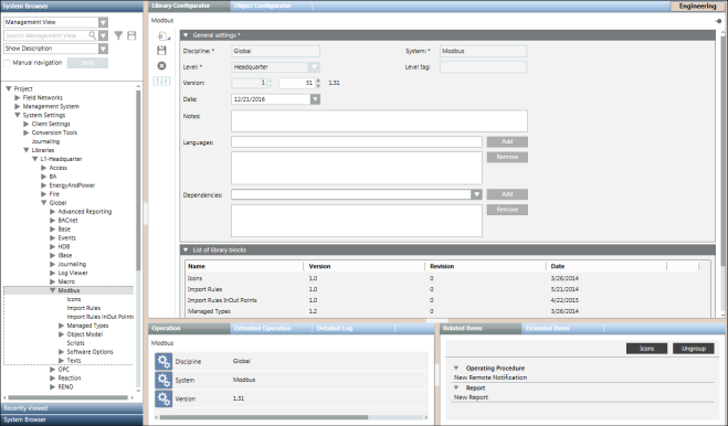 - Wählen Sie Projekt > Systemeinstellungen > Bibliotheken > L1-Headquarter > Global > Modbus.