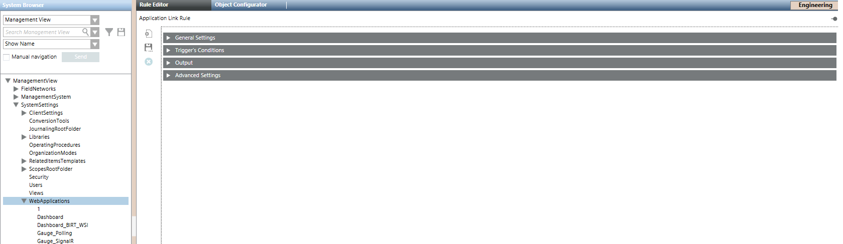 Der Arbeitsbereich Regeleditor besteht aus dem Bereich Regeleditor und der Symbolleiste für den Regeleditor