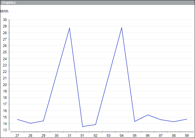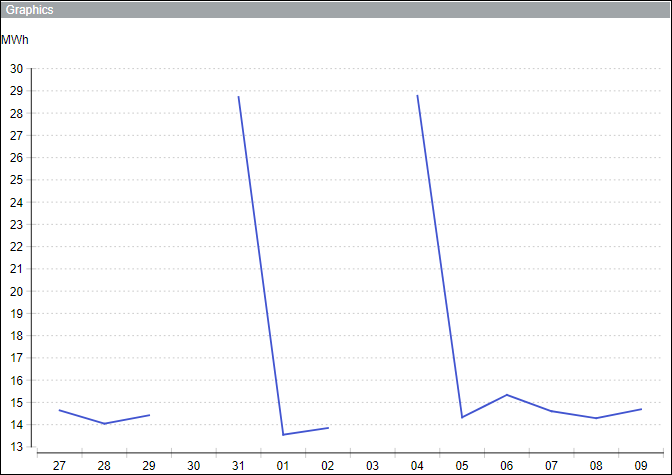 In Berichten mit Verbrauchsdaten können fehlende Daten hohe Verbrauchsspitzen in Diagrammen und leere Werte in Tabellen zur Folge haben. Sie vermeiden dies, indem Sie die fehlenden Werte verbinden und glätten.