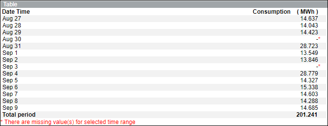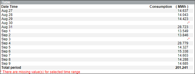 - Zeigt eine Meldung, dass für den ausgewählten Zeitbereich Werte fehlen.