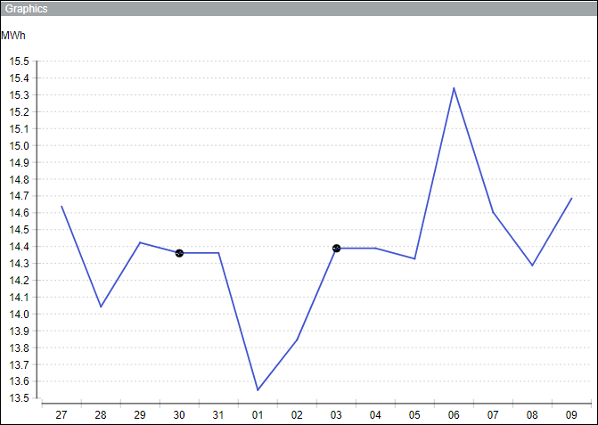 Szenario 1: Die Kontrollkästchen Fehlende Verbrauchswerte verbinden und Fehlende Werte glätten sind deaktiviert.