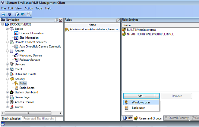 - Wenn der VMS-Server auf demselben Computer wie der Desigo CC-Server ausgeführt wird: Erstellen Sie ein lokales VideoApiService-Konto auf dem gemeinsam genutzten Computer.