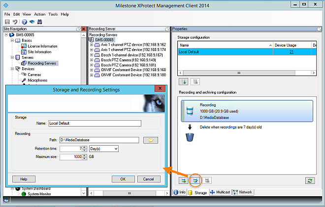 - In VMS ist im Register Speicher der Konfiguration des Aufzeichnungsservers ein Aufzeichnungsarchiv vorhanden.