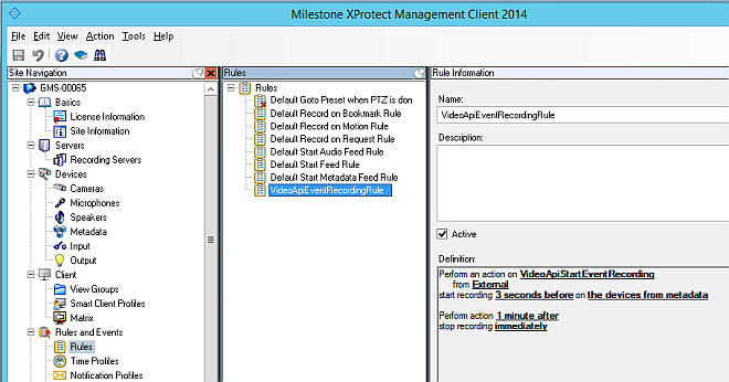 - Geben Sie im Feld Name VideoApiEventRecordingRule ein.