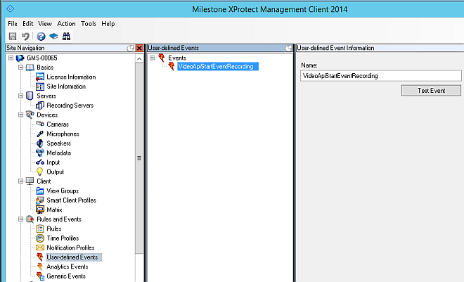- Geben Sie den Namen VideoApiStartEventRecording ein.