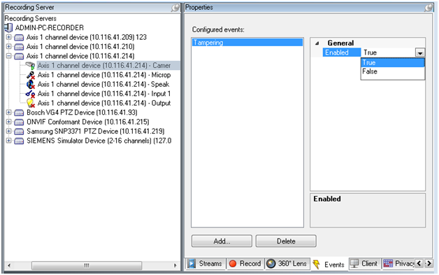 - Aktivieren Sie die benötigten Sabotage-Alarme im VMS.