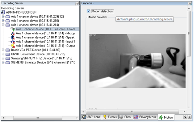 - Konfigurieren Sie die Bewegungserkennung gemäss der VMS-Dokumentation im Register Bewegung des Geräts.
