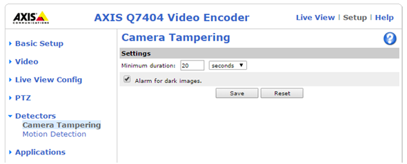 Die folgende Abbildung zeigt beispielhaft die Sabotagekonfiguration für eine AXIS-Kamera.