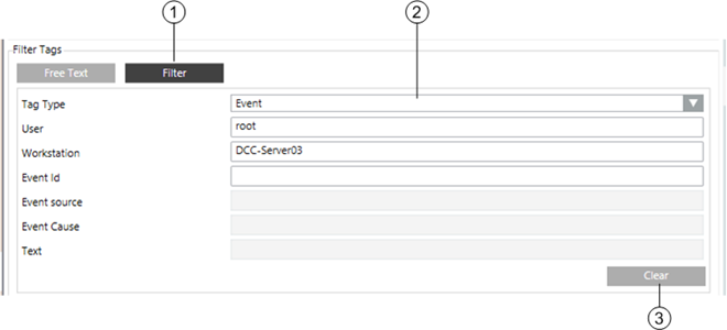 - Sie müssen die Parameterwerte in der Reihenfolge eingeben, in der sie vom System angezeigt werden. Beginnend mit Ihrer ersten Auswahl werden die zutreffenden Felder nacheinander aktiviert, während Sie die zu suchenden Werte eingeben. Aufgrund dieses Mechanismus sind bestimmte Kombinationen von Feldern nicht möglich. Beispielsweise können Sie nicht nach einer Alarm-ID suchen, ohne Benutzer und Bedienplatz anzugeben.
