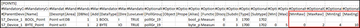- Die Sonderzeichen (' '.,'.', ':', ';', ',', '[' , ']' ,'*' ,'?' ,'{' , '}' , '@' ,'$') in Gerätename, Punktname und Textgruppenname werden durch '_'(Unterstrich) ersetzt.