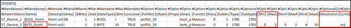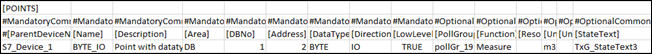 Um mehr als zwei Zustände darzustellen, werden wir nun das Attribut StateText eines Multistate-Punkts konfigurieren. In der CSV-Beispieldatei unten wurde die Textgruppe mit dem Namen "TxG_StateText3" dem Punkt "BYTE_IO" zugewiesen.