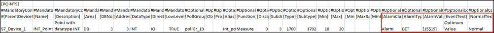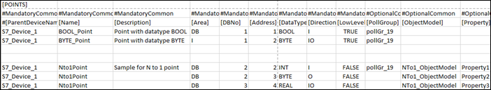 Eine als Vorlage dienende CSV-Beispieldatei mit dem Namen S7_template_4.0_SystemDefPointInstances ist im Ordner GmsMainProject\profiles\S7DataTemplate. Diese CSV-Datei kann eingesetzt werden, um Ihre Dateneingabe zu starten.