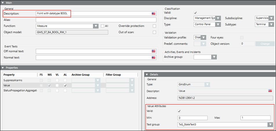 ObjectModel | Objektmodell des Punkts. Sie müssen in diesem Feld keinen Wert angeben, wenn Sie S7-Punkte mit nativen Objektmodellen importieren. Wenn Sie jedoch S7-Punkte mit N-zu-1-Abbildung importieren, müssen Sie den Wert des Objektmodells und der Eigenschaft angeben. Bevor Sie einen Namen angeben, müssen Sie sicherstellen, dass im System ein Objektmodell definiert ist. Weitere Informationen zur Erstellung von Objektmodellen finden Sie unter Objektmodelle erstellen. |