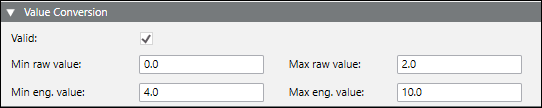 Die Daten für Min Rohwert, Max Rohwert, Min Konfig-Wert und Max Konfig-Wert in der CSV können wie folgt konfiguriert werden:
