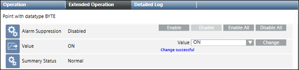Sie können nun in der Dropdown-Liste den gewünschten Zustand wählen. Durch Auswahl des Zustands wird der relevante Wert in den Datenpunkt geschrieben. Der Wertebereich liegt zwischen den in der CSV-Datei festgelegten Mindest- und Maximalwerten.