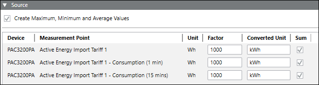 - Umgerechnete Einheit: Zeigt die Einheit des Messpunktes nach Anwendung des Umrechnungsfaktors an.