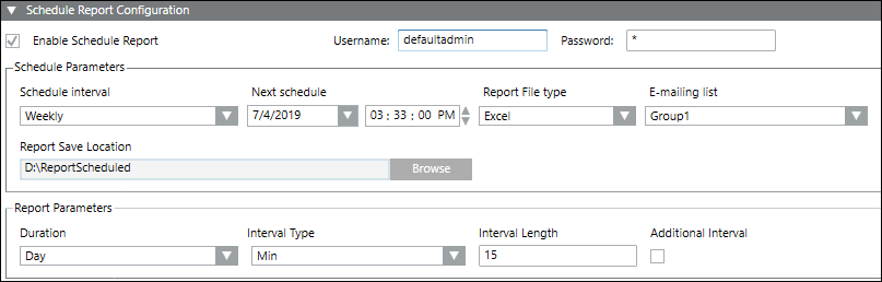 - Reportplanung aktivieren: Zur Aktivierung der Konfiguration für die Weiterleitung des Berichts an einen E-Mail-Verteiler oder einen Ordner im lokalen Speicher.