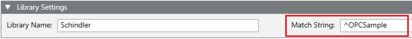 - Mit Zeichenfolge übereinstimmen (dieser Wert wird zum Identifizieren des OPC-Servers benötigt, der die OPC-Items bereitstellt, die Sie in Ihrer Bibliothek modellieren möchten).