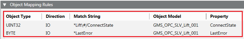 - Geben Sie im Expander Objekt-Abbildungsregeln an, wie die OPC-Items abgebildet werden.