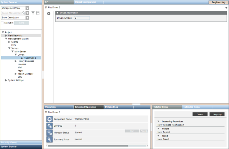 | Objekt löschen | Löscht den S7 PLUS-Treiber. Sie können einen Treiber löschen, solange er nicht mit einem bestehenden Netzwerk verbunden ist. Um einen Treiber zu löschen, der mit einem Netzwerk verbunden ist, müssen Sie den Treiber vom Netzwerk lösen, indem Sie die leere Zeile in der Dropdown-Liste Überwacht von Treiber wählen und Speichern klicken. Wenn der gewählte Treiber mit einem Netzwerk verbunden ist, informiert Sie eine Meldung darüber, dass der Treiber nicht gelöscht werden kann, da er ein Netzwerk überwacht. In diesem Fall müssen Sie zunächst das Netzwerk entfernen, mit dem dieser Treiber verbunden ist, um den Treiber löschen zu können. |