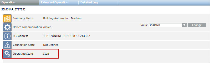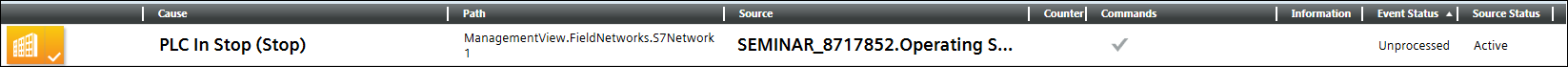 Sobald das Gerät in den Stopp-Status (0) übergeht, wird an der Managementstation ein Alarm ausgelöst. Dieser weist darauf hin, dass das Gerät nicht betriebsbereit ist. Wenn sich der Status des Geräts wieder ändert, können Sie den Alarm quittieren.