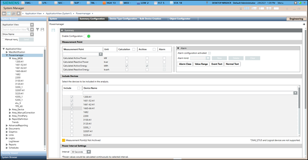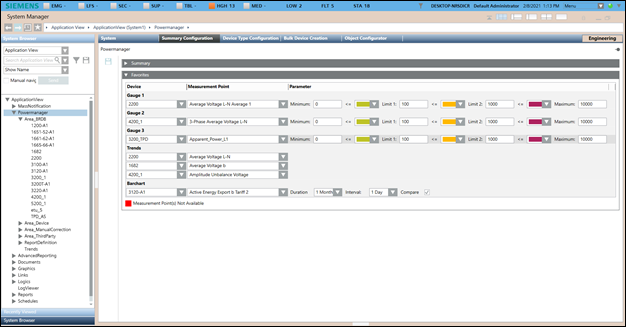 Wenn Sie im Konfigurationsmodus den Basisordner von powermanager wählen, müssen Sie zuerst die Parameter des standardmässig angezeigten Registers Systemkonfiguration konfigurieren.