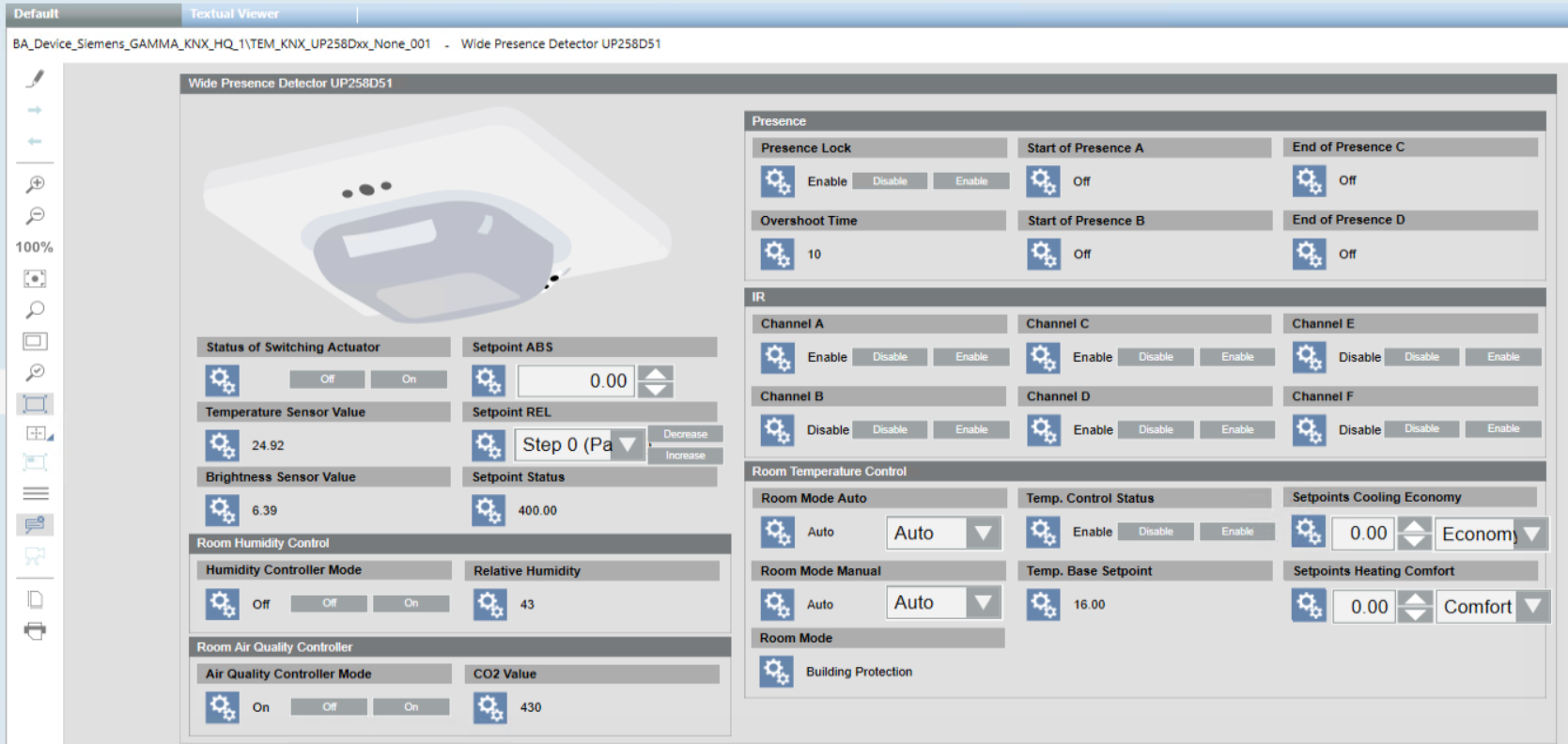 Im Konfigurationsmodus ist dies die Grafikvorlage für die Präsenzmelder UP 258E22 und UP 258D12.