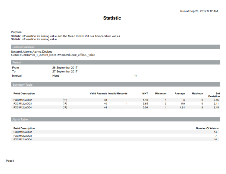 Roter Wert im Abschnitt der Übersichtstabelle | Dieser kennzeichnet die Anzahl der fehlerhaften oder ungültigen Datensätze, die im Trend gefunden und nicht zur Berechnung von MKT, Minimal-, Maximal- und Durchschnittswert sowie Standardabweichung verwendet wurden. |