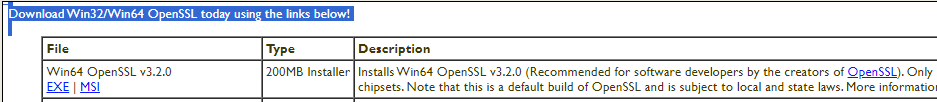 - Installieren Sie die Win64-Version von OpenSSL (1.1.1 oder höher): https://slproweb.com/products/Win32OpenSSL.html
