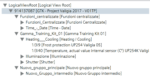 - Im System Browser wird die KNX-Konfiguration in einer physikalischen Objektstruktur angezeigt.