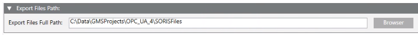 (Optional) Der Expander Vollständiger Pfad Exportdateien stellt das folgende Standardausgabeverzeichnis bereit: [Installationslaufwerk]:\[Installationsordner]\[GMSMainProject]Data\[OPC_UA_Client]\SORISFiles. Sie können Browser klicken und ein anderes Ausgabeverzeichnis angeben.