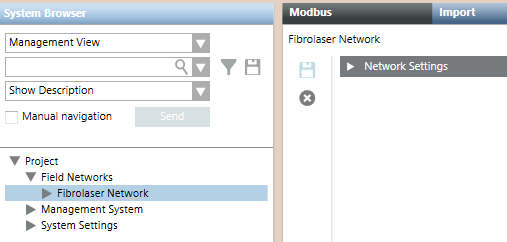 - Das neu erstellte Modbus-Netzwerk wird dem System Browser hinzugefügt.