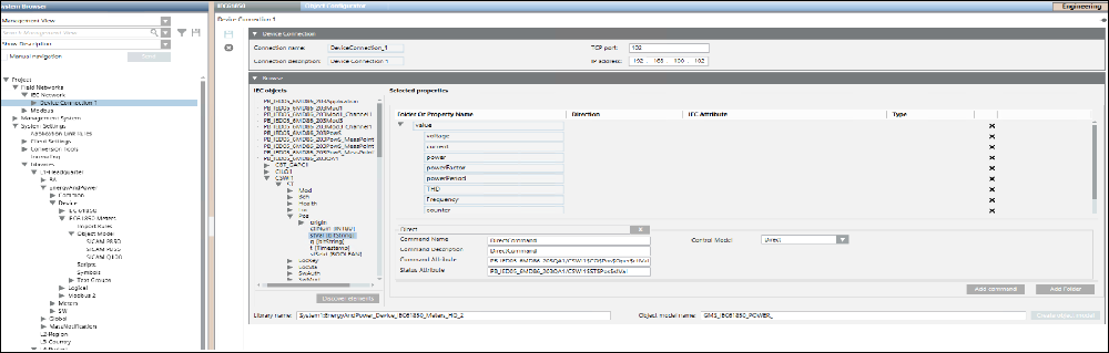 Der Expander Durchsuchen zeigt die Objekte und Eigenschaften der IEC61850 Geräte an, die mit Ihrem System verbunden sind. Darüber hinaus enthält er Optionen zum Erstellen eines Objektmodells für die IEC61850 Geräte, ohne eine CSV-Datei erstellen zu müssen. Weitere Informationen finden Sie unter Objektmodell über Durchsuchen eines IEC 61850 Online-Geräts erstellen.