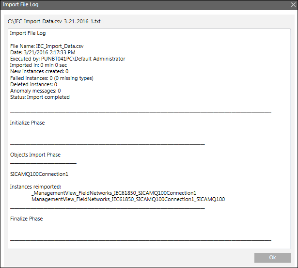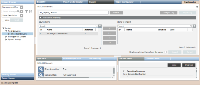 Mit dem IEC61850 Importer können Sie den Import von Felddaten (Konfigurationsobjekten) verwalten, die in den IEC-Konfigurationsdateien (CSV-Datei) beschrieben sind.