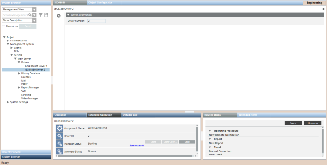 Der Arbeitsbereich für Treiber zeigt die ID des aktuell ausgewählten IEC61850 Treibers im Ordner Treiber des System Browsers.