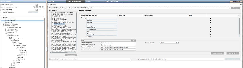 Bibliotheksname | Zeigt den Namen der IEC61850 Bibliothek. Sie müssen das Bibliotheksobjekt aus dem System Browser ziehen. |