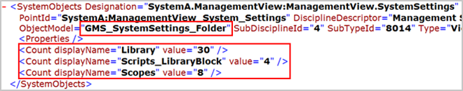 - GMS_SystemSettings_Folder mit der Anzahl der Objektmodelle, deren OM- und Anzeigename identisch ist, einschliesslich: