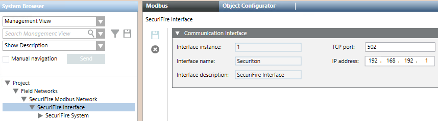 - Wählen Sie Projekt > Subsystemnetzwerke > [SecuriFire-Netzwerk] > [SecuriFire-Schnittstelle].