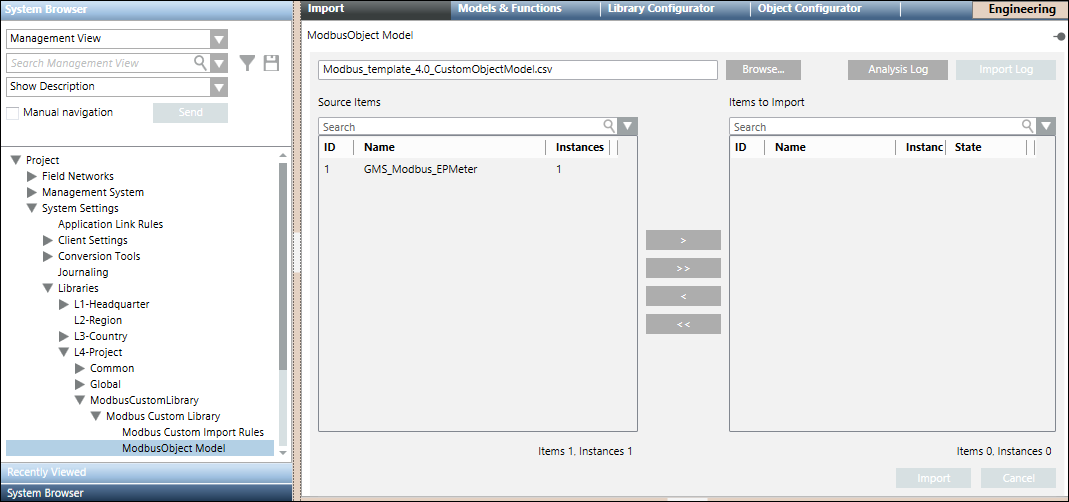 - Sie haben eine CSV-Datei mit den Details der zu importierenden Objektmodelle angelegt.