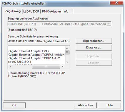 Konfigurieren Sie die PG/PC-Schnittstelle