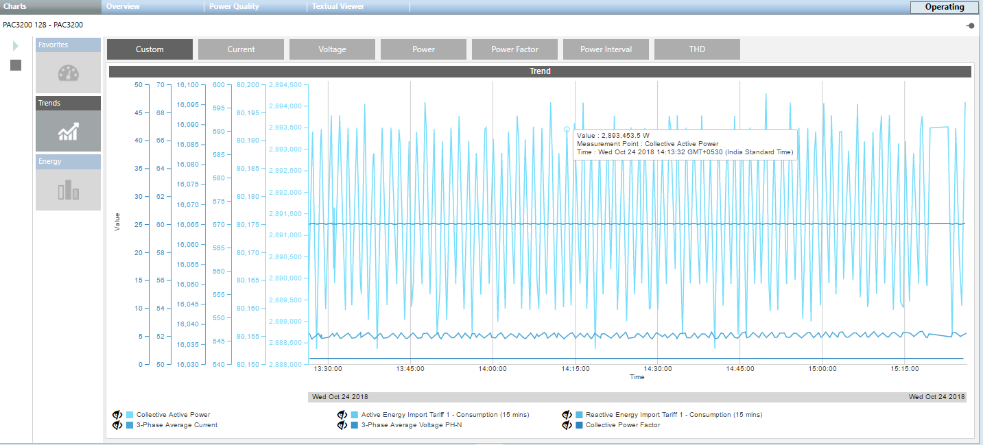 - Strom: Zeigt die Trends in 3-Phasen-Strömen und den mittleren Strom an.