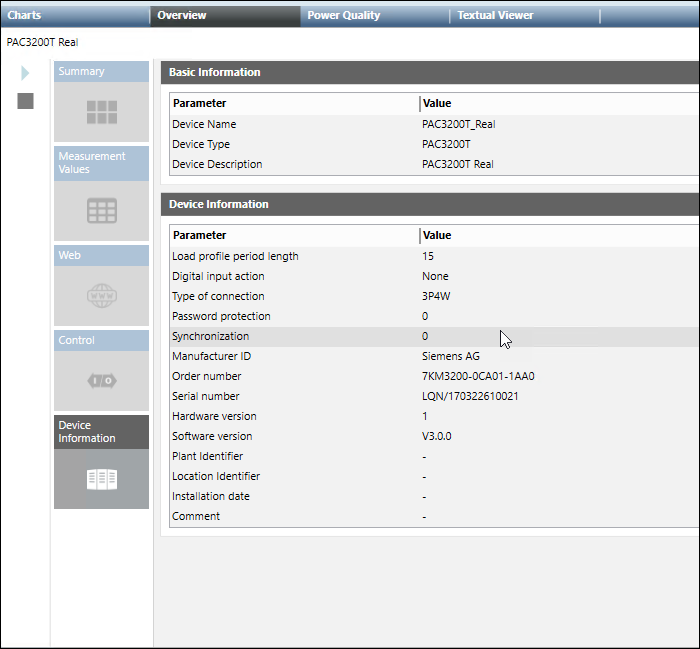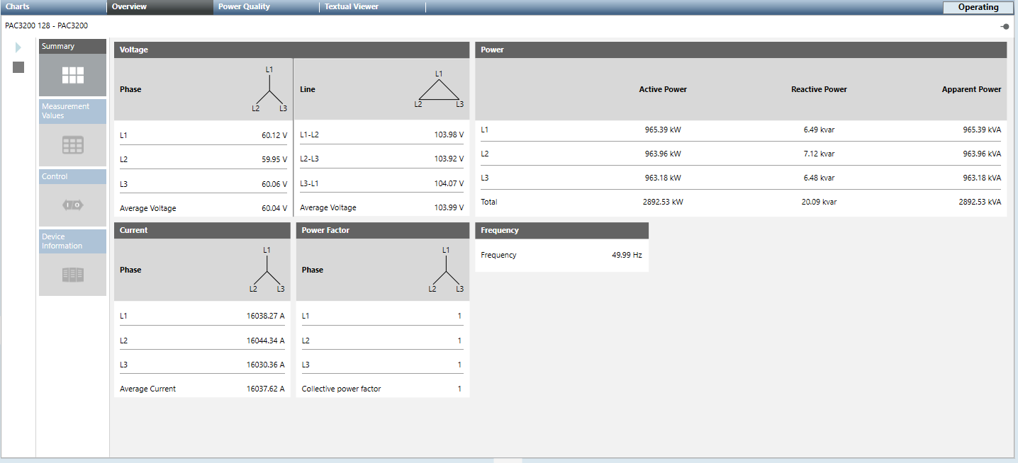 - Zusammenfassung: Zeigt die Echtzeitwerte für Spannung, Leistung, Strom, Leistungsfaktor und Frequenz an.