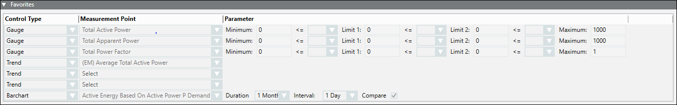 - Messpunkt: Hier können Sie in der Spalte Gerät die Messpunkte wählen, die für das entsprechende Gerät konfiguriert werden sollen.