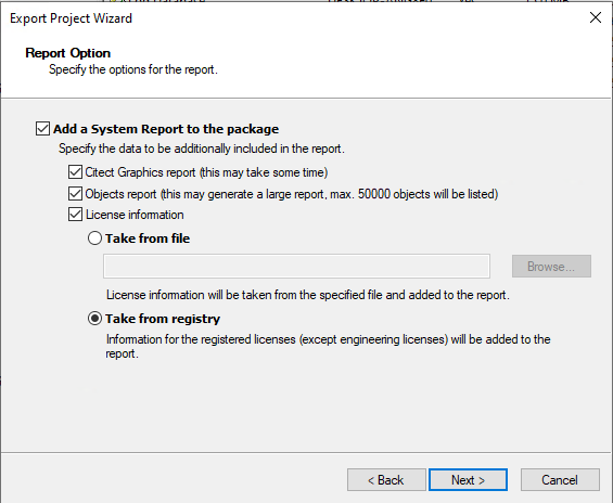 - Wählen Sie im Dialogfeld Berichtsoption eine oder mehrere Optionen für den integrierten Systembericht: