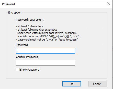 - (Optional) Wenn Sie das Kontrollkästchen Passwort für 7z-Datei erstellen aktivieren, geben Sie ein Passwort ein und klicken Sie OK.